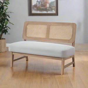 Discover the perfect addition to your dining space within our Calamus Sofa Series - the fabric-upholstered solid wood dining bench. Its exquisite design features a distinct rattan weave on the backseat, adding a touch of authenticity to your dining experience. For a complete Asian-inspired dining set with unique rattan weave motifs, consider pairing this chair with our Calamus Fabric-Upholstered Wooden Dining Chair. Elevate your dining area with this charming and elegant ensemble from our Calamus collection.