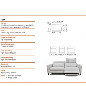 Americana 3-Seater (RN0937) 2.1m Zero Wall Fabric Wall Hugging Electric Recliner Sofa (I)