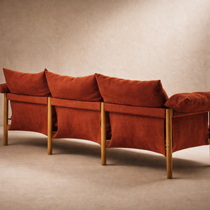 A mid-century sofa shaped by clean lines, balanced proportions, and a quiet sense of presence. Its silhouette is refined yet approachable, making it suitable for interiors that value timeless form, material richness, and everyday comfort.