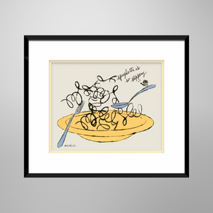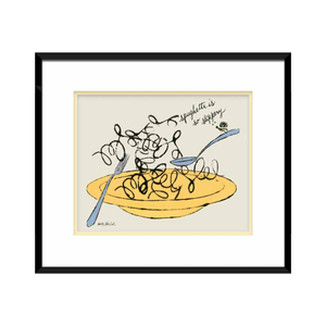 Thislicensed art print features“Spaghetti Is So Slippery” byAndy Warhol, an artwork that showcases his fascination with everyday commercial products. Approaching food packaging with the same importance as celebrity portraiture, Warhol elevates a mundane object into pop culture commentary through striking colour, contrast and irony. This piece lends playful sophistication to contemporary interior spaces.