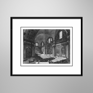 This licensed art print features “Veduta Interna Della Chiesa Della Madonna” by Giovanni Battista Piranesi, an 18th-century Italian artist renowned for his grand architectural engravings and classical structural studies. This work showcases a detailed interior perspective of a historic church, rendered with exceptional precision and dramatic depth. A sophisticated addition to design-led spaces, the artwork highlights symmetry, heritage craftsmanship and refined European aesthetics.