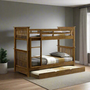 ASolid Wood Bunk Bed must be exceptionally strong, especially for super single-sized models. The increased width and mattress size demand a sturdy frame to withstand greater forces. Solid wood is naturally resilient, absorbing stress without warping or bending. This makes our Americana Solid Wood Bunk Bed the ideal choice for ensuring both safety and longevity while maintaining a stylish look.