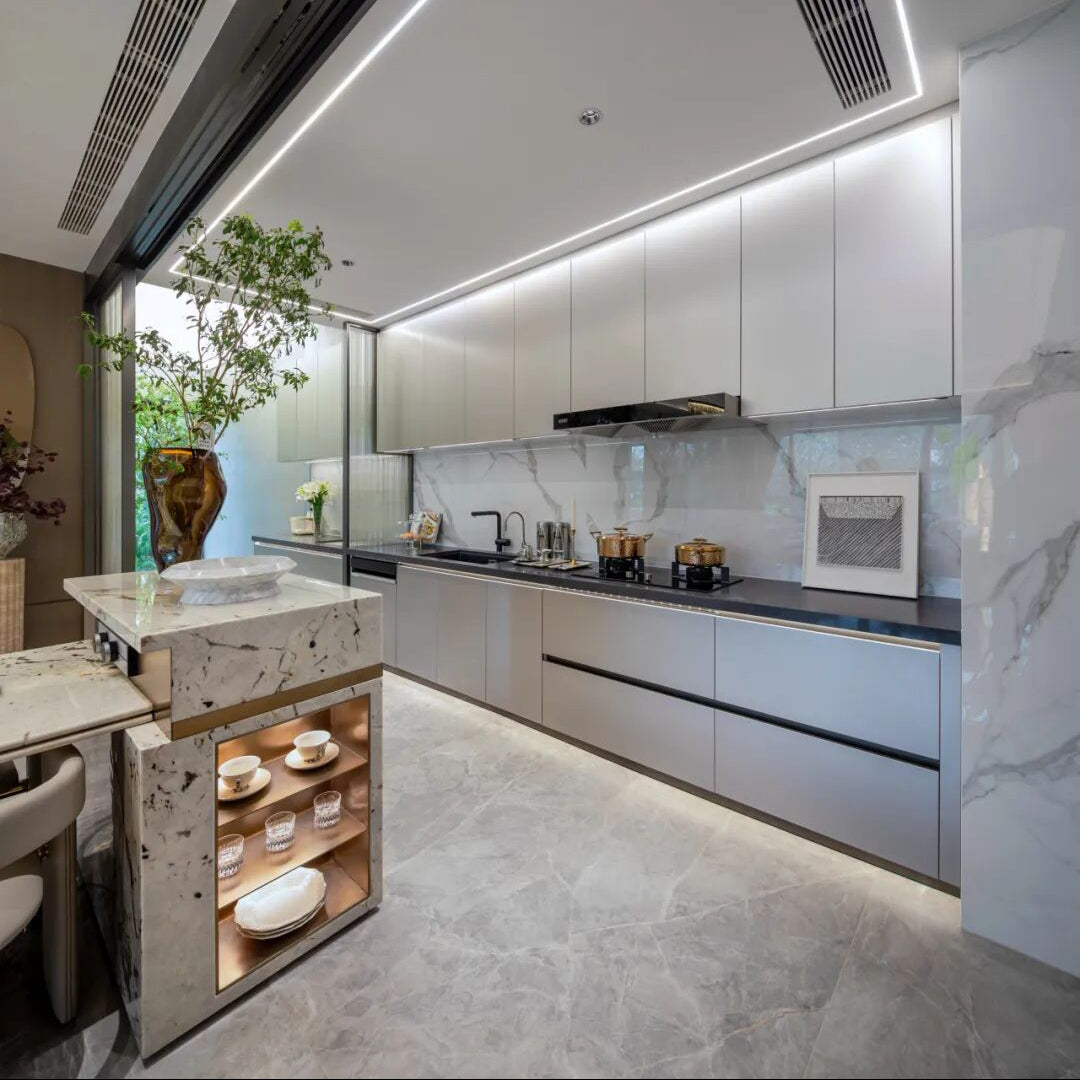 The material of the cabinets can significantly impact the overall appearance and durability. Common materials include hardwood, plywood, medium-density fiberboard (MDF), and particleboard. Each material has its own characteristics in terms of strength, durability, and cost.