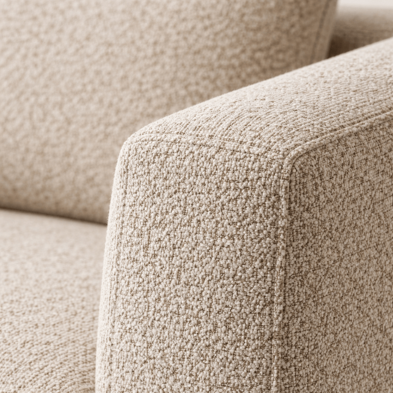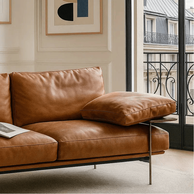Every made-to-order sofa begins with a foundation of kiln-dried hardwood for strength and long-term stability. Cushions combine high-resilience foam with layered fills to create both structure and softness. Our Italian full top-grain leathers and premium Melange fabrics come from trusted mills, offering a wide palette of textures and tones, from buttery smooth hides to tactile woven blends. Each material is chosen for longevity and the way it interacts with light and touch.
