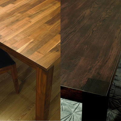Premium solid American Black Walnut with a 100% luxurious natural Indian sintered stone-top veneer which is scratch, heat and moisture-resistant. And a 10-year warranty to boot. It doesn't get anymore premium than this.