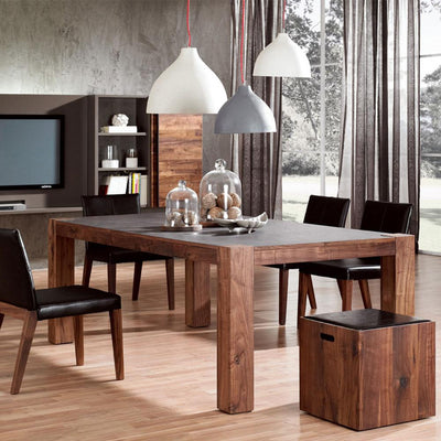 Premium solid American Black Walnut with a 100% luxurious natural Indian sintered stone-top veneer which is scratch, heat and moisture-resistant. And a 10-year warranty to boot. It doesn't get anymore premium than this.