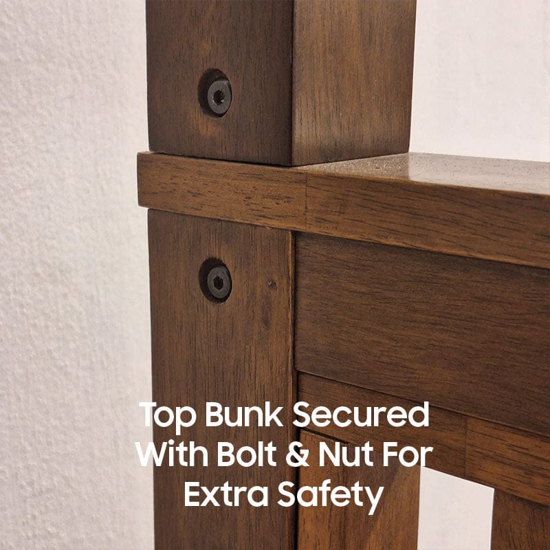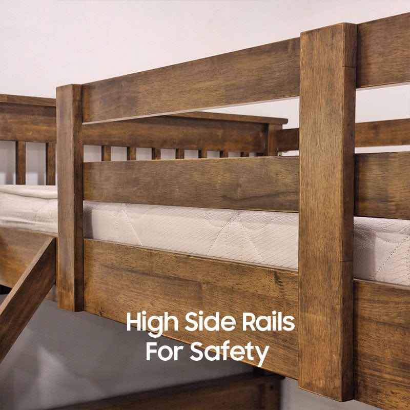 We pride ourselves on choosing only the finest materials for our double decker beds for the Singapore market. This includes Grade A solid wood such as American Walnut, Hevea, and Oak. These high quality woods not only radiate natural beauty but also offer exceptional durability and longevity. They also provide bunk bed strength and safety to kids.