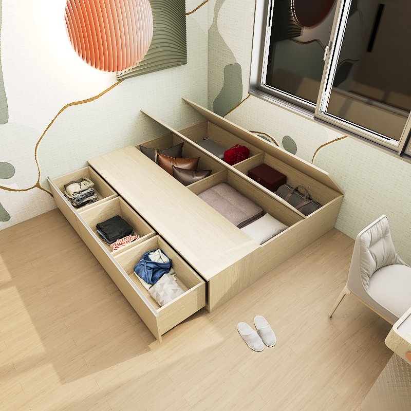 Tatami storage beds can serve multiple purposes. They can be used for sleeping and storing items.