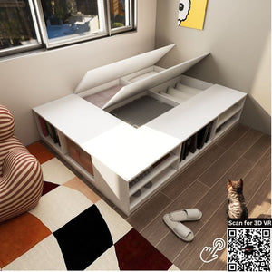 Second, our Custom Cabinetry System offers a wide range of custom options. You can either design a Storage Platform Bed from scratch or choose from our ready-made setups. Plus, you can add matching wardrobes, headboards, side tables, or study sets to create a complete bedroom.