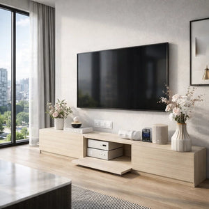 Eco-Friendly Excellence: We care about your health and the environment. That's why our Custom TV Console is crafted from formaldehyde-free engineered solid wood. This not only ensures the durability and longevity of your console but also contributes to a healthier indoor environment for you and your family.
