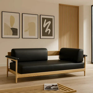 Dix® Solid Wood Series - The Neo DayBed (SF9434) Custom Solid Wood Leather Sofa 2/3 Seater Italian Minimalist Solid American Oak