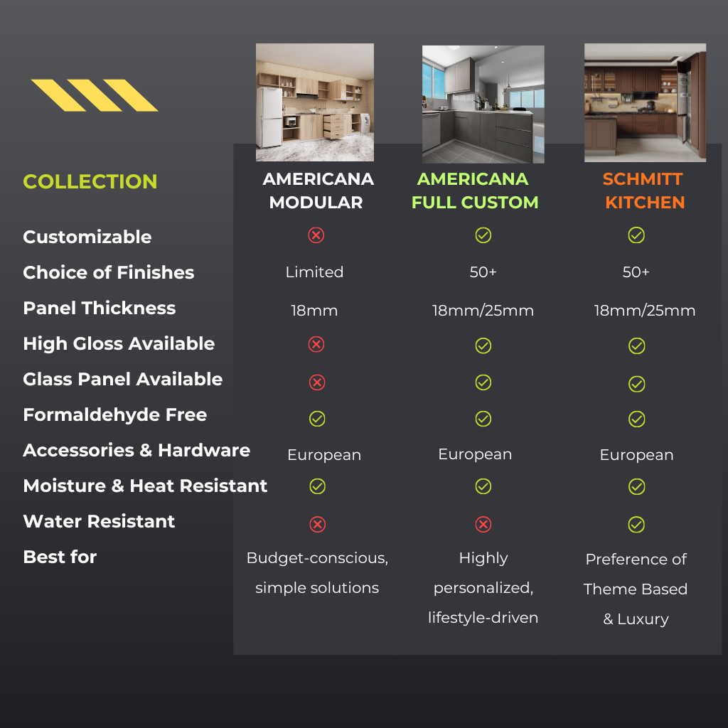 The Americana Modular Cabinetis a simplified kitchen solutionfor homeowners who prefer an easy design process and clear pricing. With fixed dimensions, set layouts, and transparent costs, it’s like buying furniture off the shelf — quick, reliable, and hassle-free.
