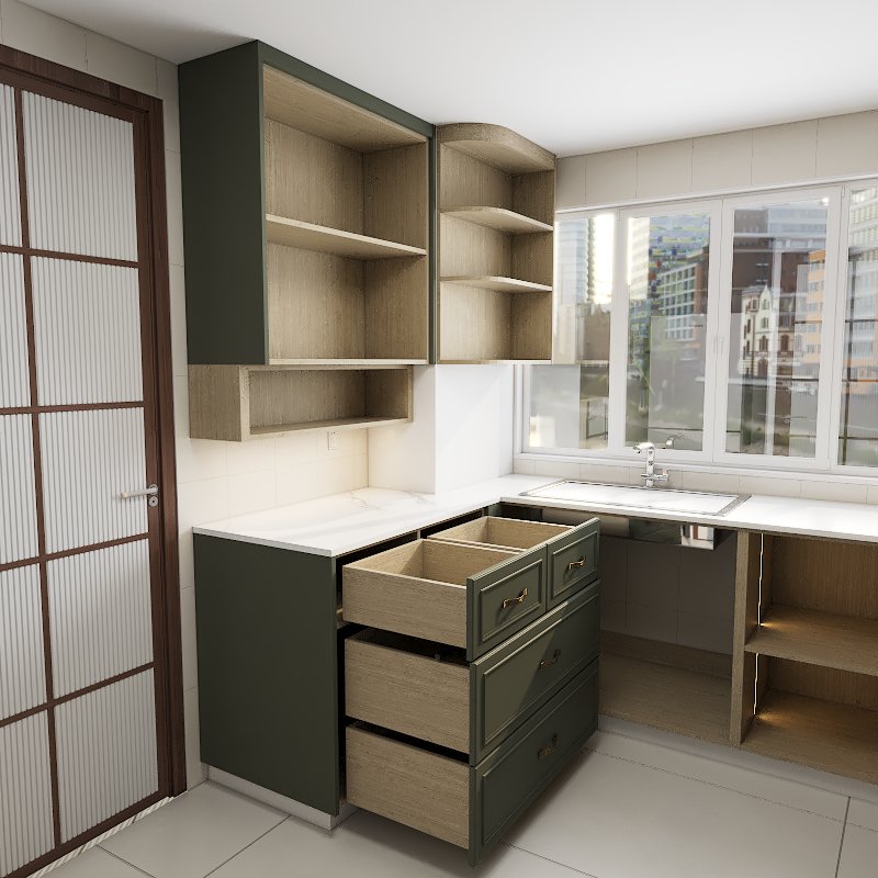Picket & Rail partners with SOGAL, Asia's largest custom cabinetry manufacturer to craft with French engineering and award-winning design. Our kitchen cabinets feature durable, water-resistant boards and a wide range of premium hardware options, including full-height pull-out baskets and heavy-duty drawers—offering both style and functionality.